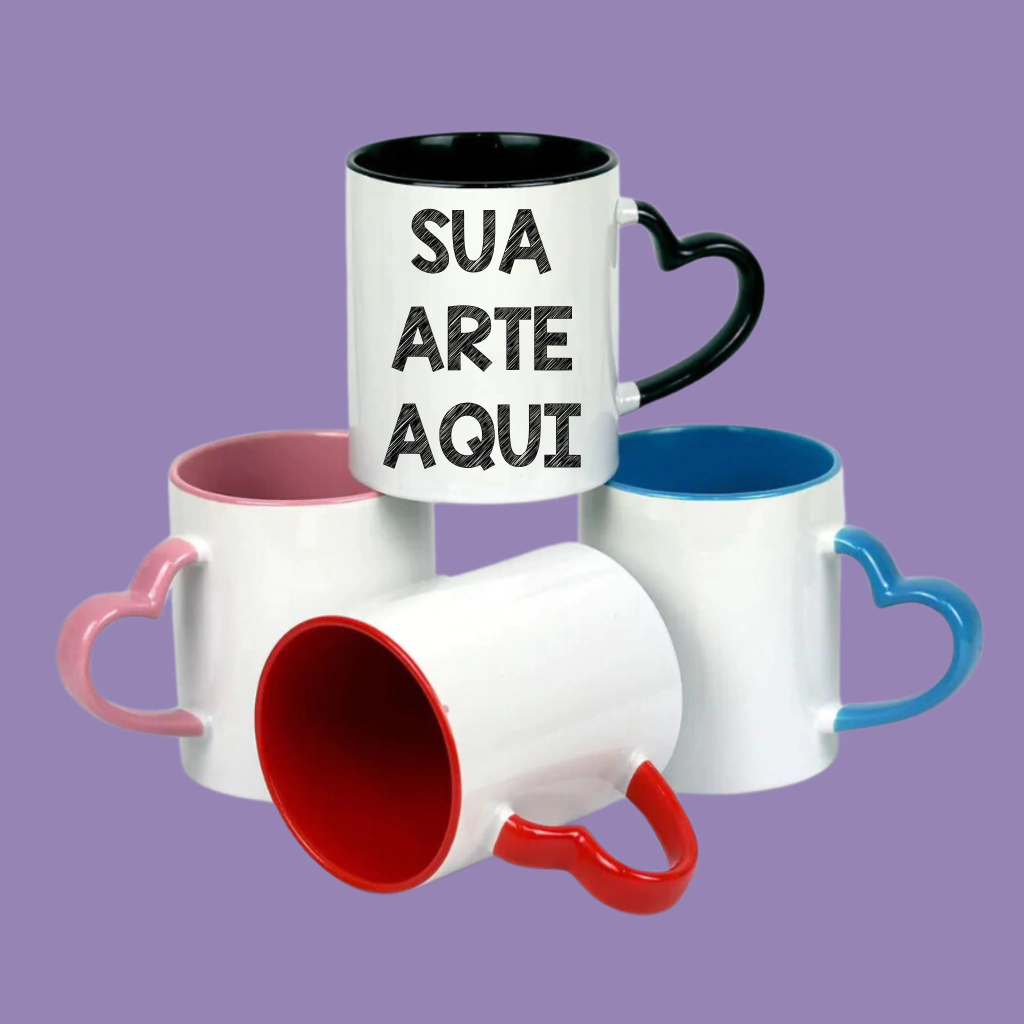 Caneca personalizada, alça coração, interior e alça coloridos 325 ml